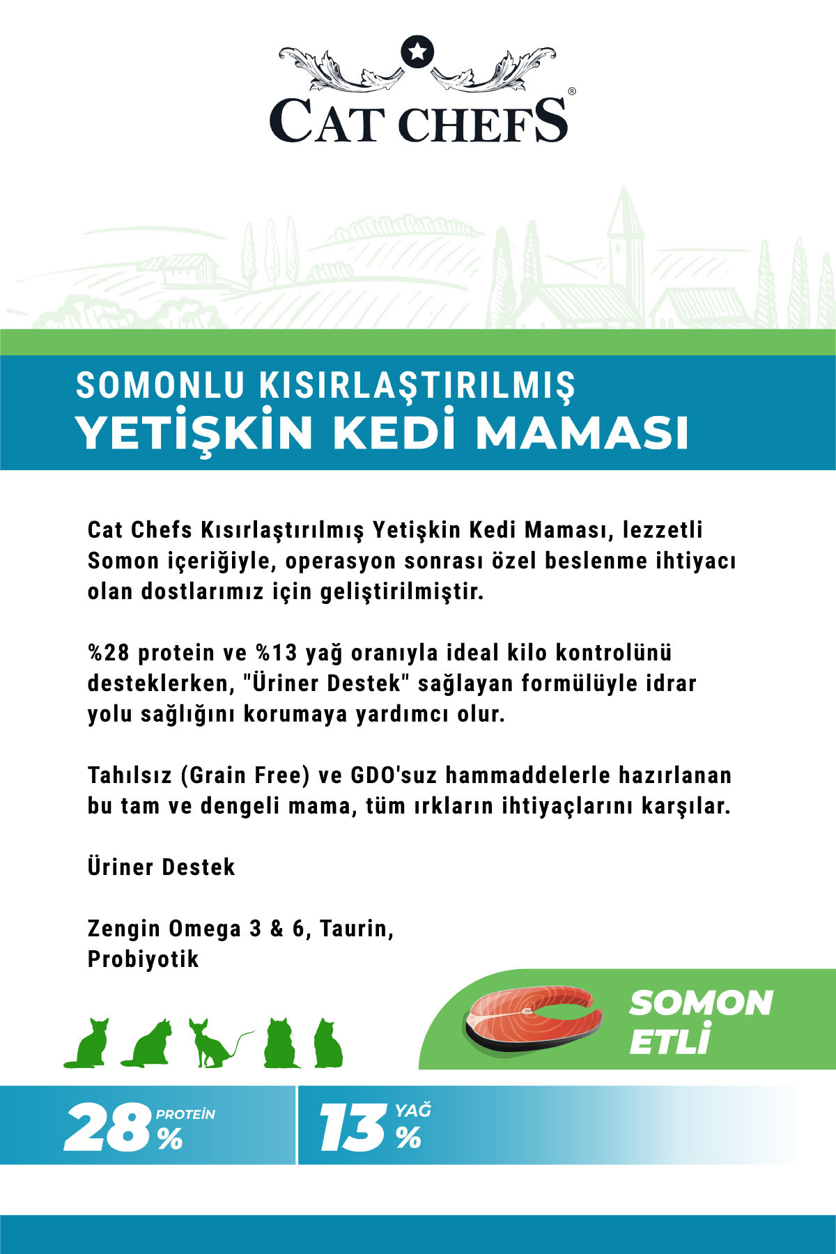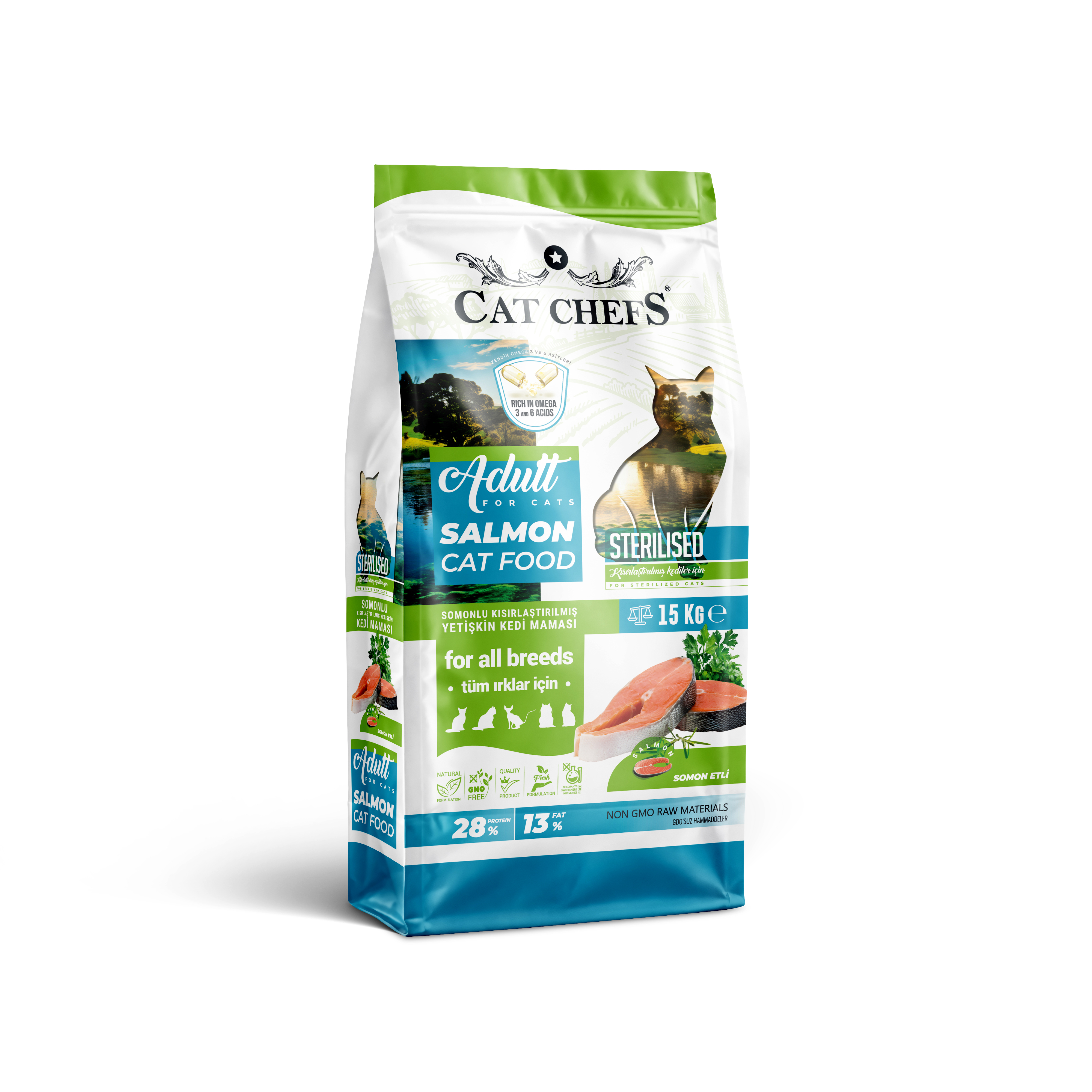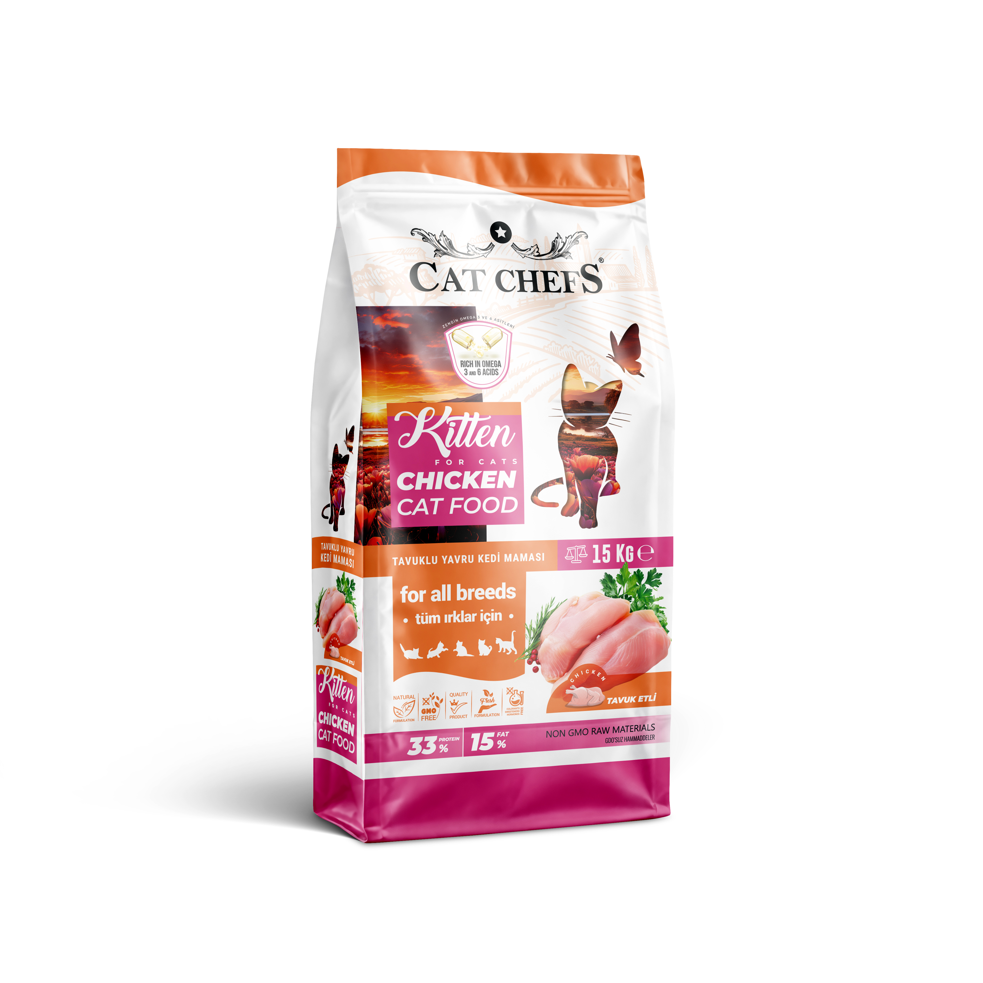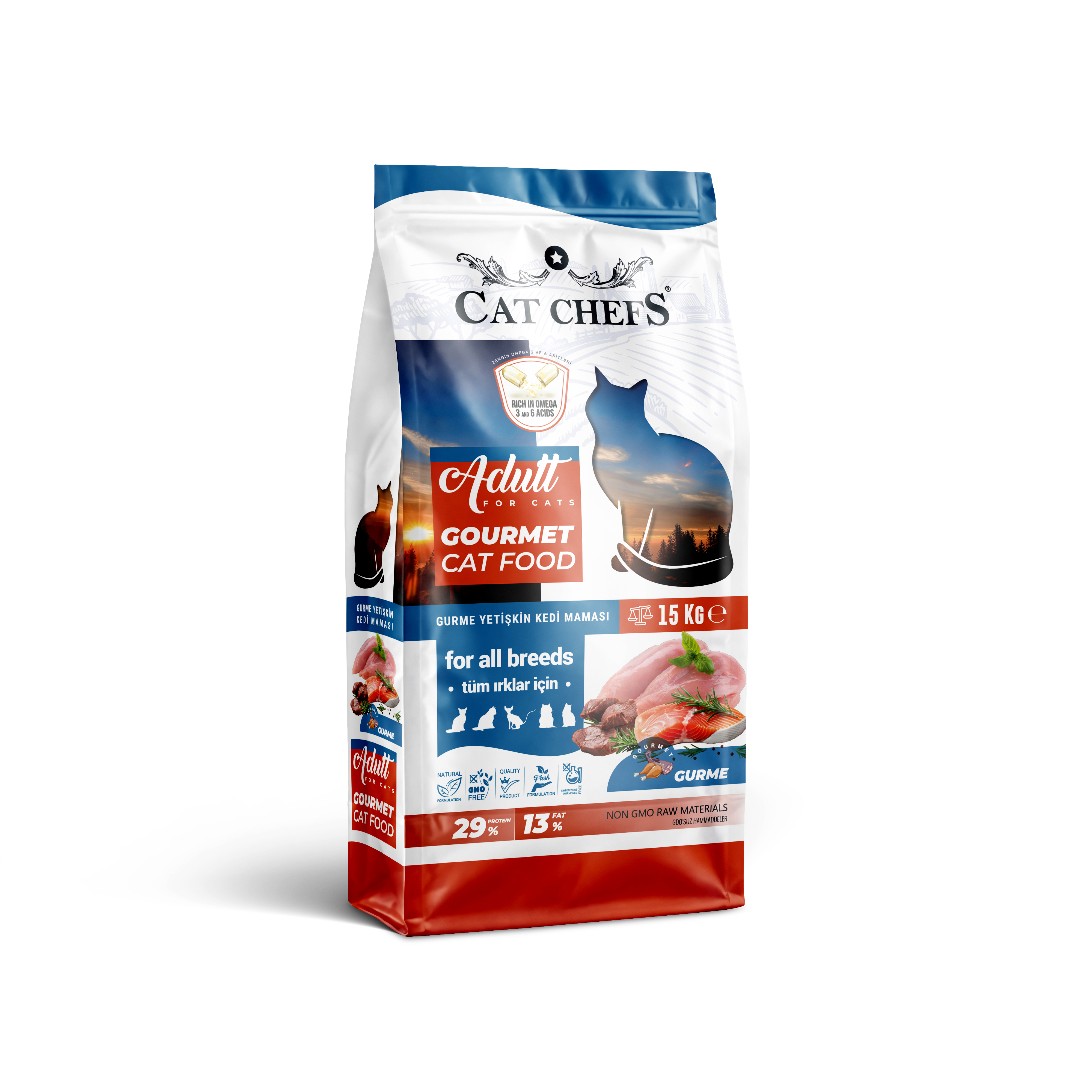 Specially developed to ensure our furry friends live healthy and happy lives at every stage, Cat Chefs offers complete and balanced nutrition suitable for the needs of all breeds. Prepared with fresh, non-GMO raw materials and without the use of colorants or sweeteners, this natural series allows you to safely choose the most suitable alternative for your cat's age, specific conditions, and palate.