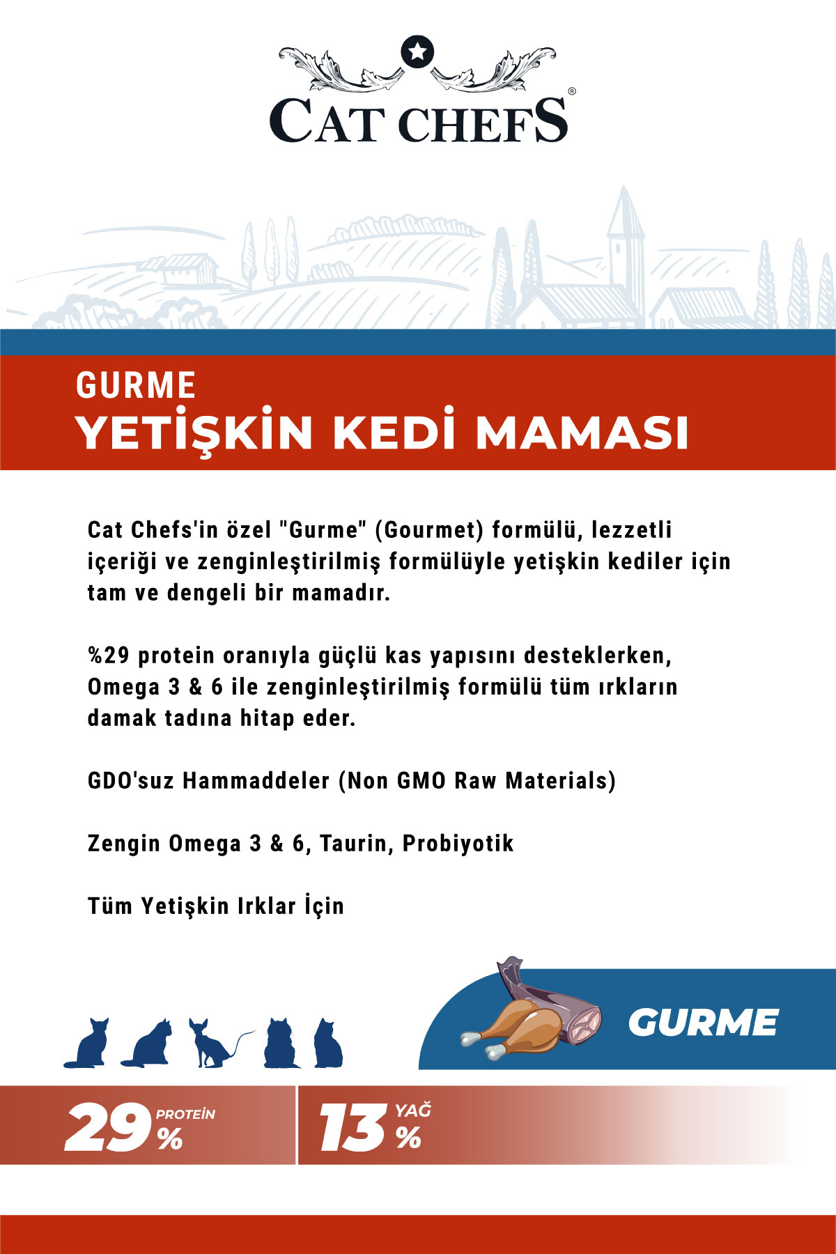 Gourmet Adult Cat Food: Specially developed with a 29% protein and 13% fat ratio for picky eaters and cats with refined palates. With its rich flavor profile and added Probiotics, it features a formula that even the most selective cats will eat with appetite.