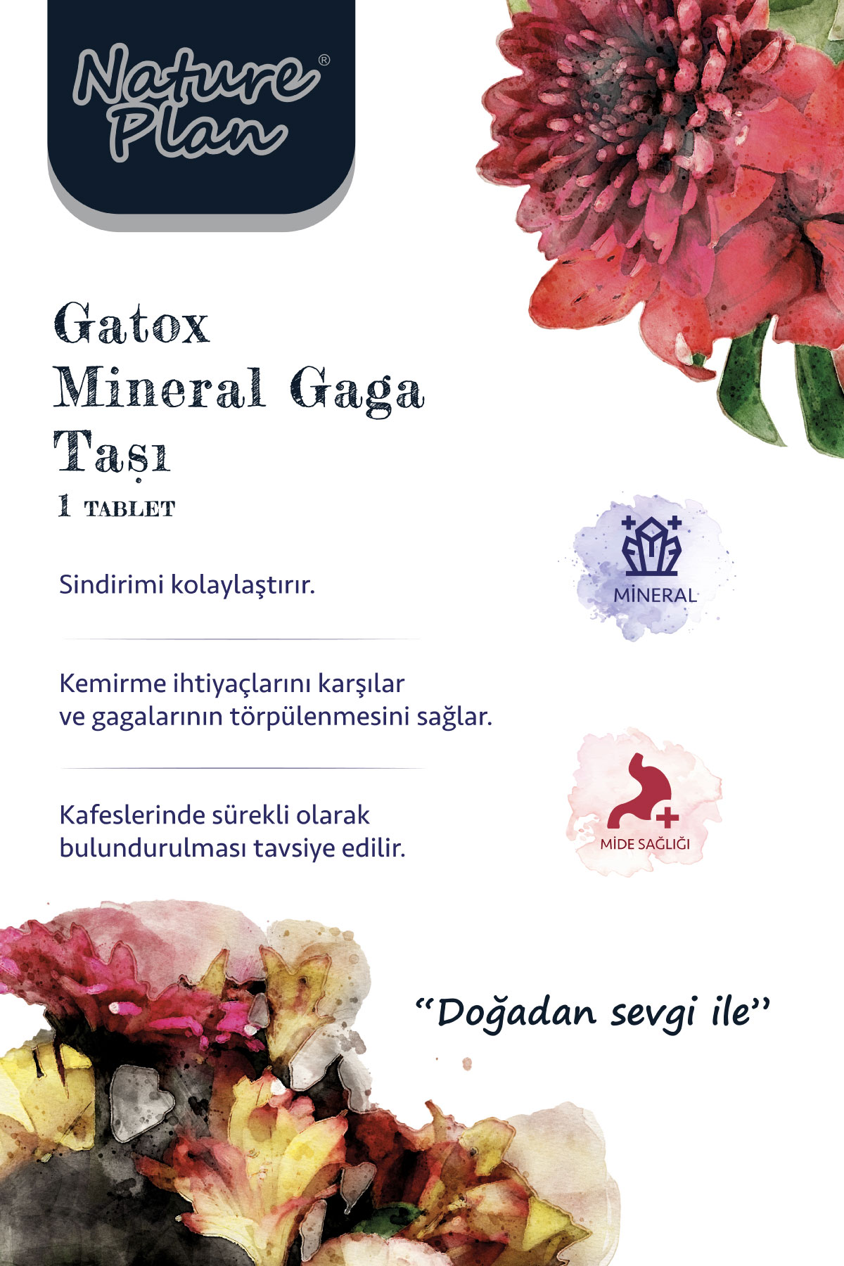 Tüm kafes kuşları için hazırlanmış Bağırsak enfeksiyonlaının önlenmesinde ve sindirimin kolaylaştırılmasında yardımcı olan kemirme bloğudur. Kuşun kafesinde sürekli olarak durabilir.